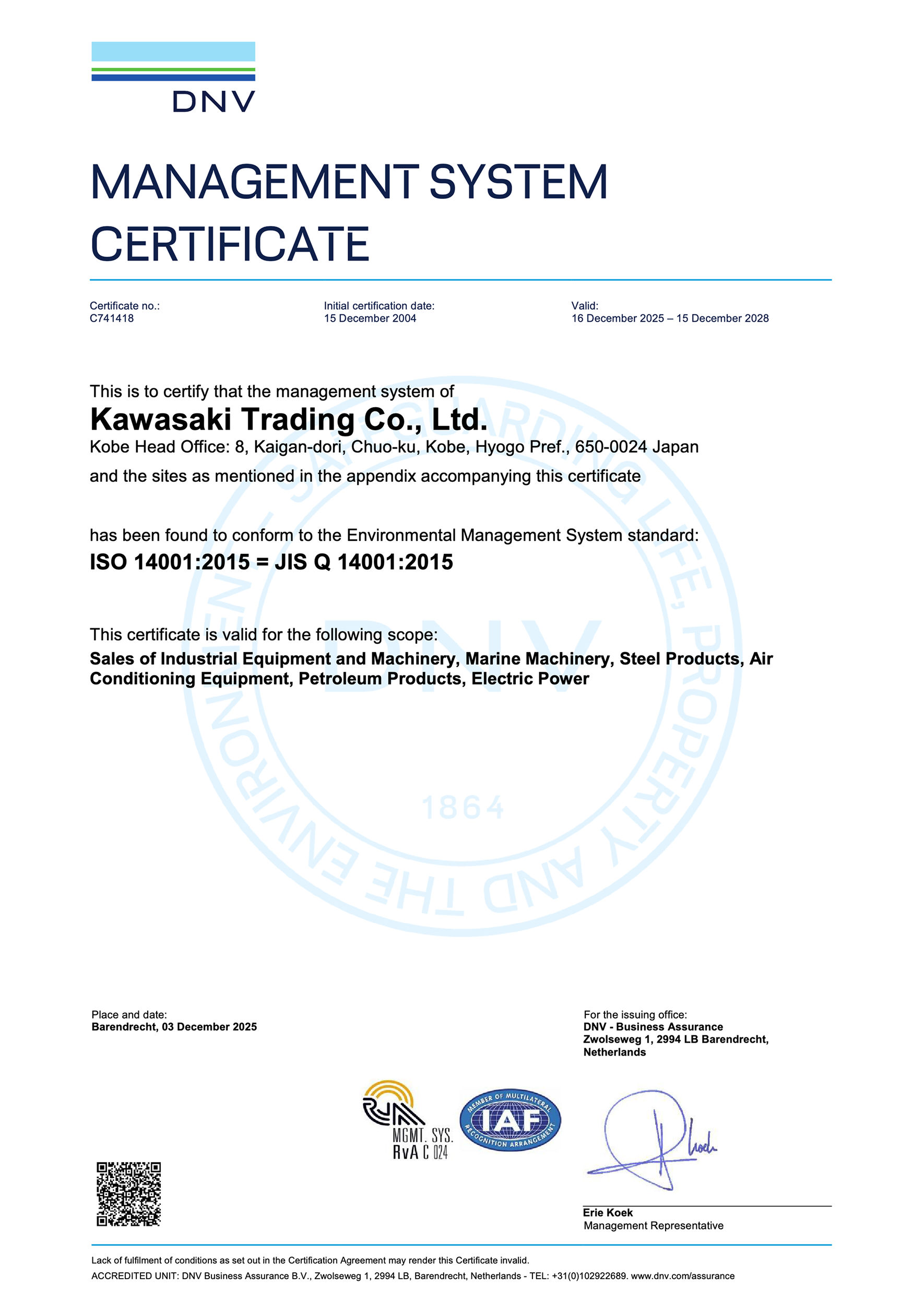 We, Kawasaki Trading Co., Ltd. are determined to pursue sound, environmentally-friendly corporate activities to help to find solutions to the global environmental problems which affect all people and create a “recycling-oriented economic society”, thereby contributing to “sustainable social development.”